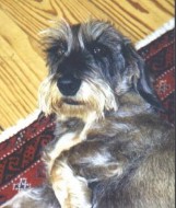 Hannah blieb bei uns. Sie wurde als Zwerg einge-messen, konnte aber leider keinen Formwert erhalten, da der Bart und die Brauen fehlen. Sie ist aber trotz-dem unser großer Schatz, der auch ohne Bart für uns der schönste Rauhhaarteckel ist und ein hervorra-gender zuverlässiger kleiner Jagdhelfer.